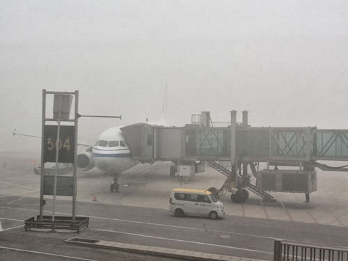 飛行機を降り、その場でバスに乗り、ターミナルへ移動し